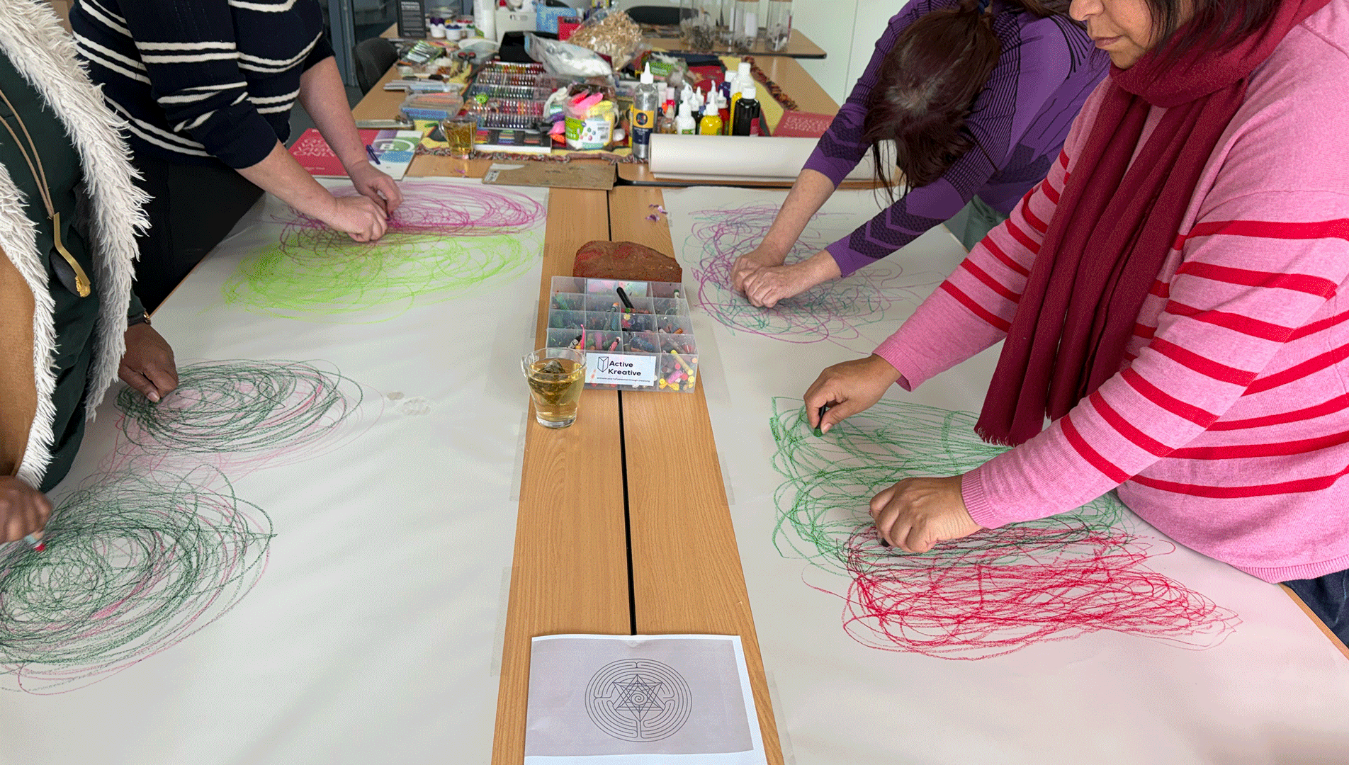 Each fortnight, we gather in person to work with art therapy, neurographic drawing, sacred geometry, somatic grounding, and guided reflection.